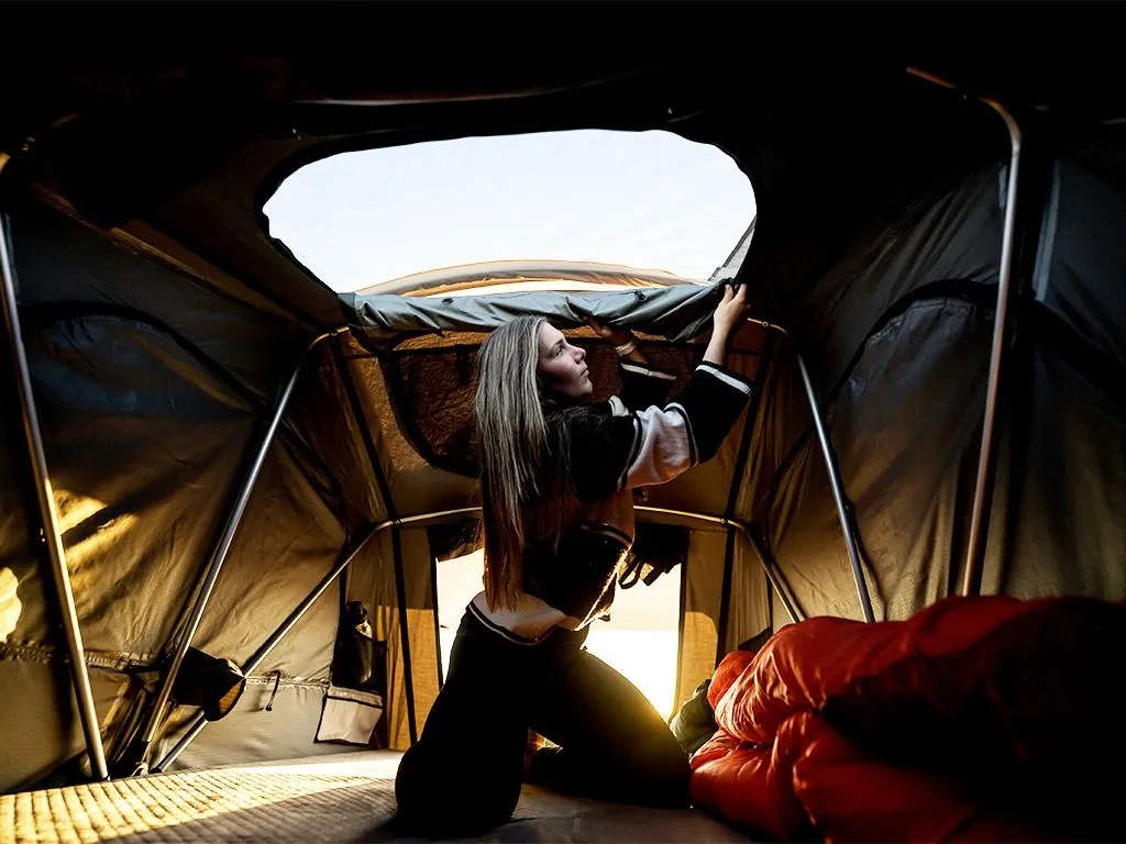 - Stargazing windows in the tent roof can be unzipped for fresh air, sunlight, or starlight views.